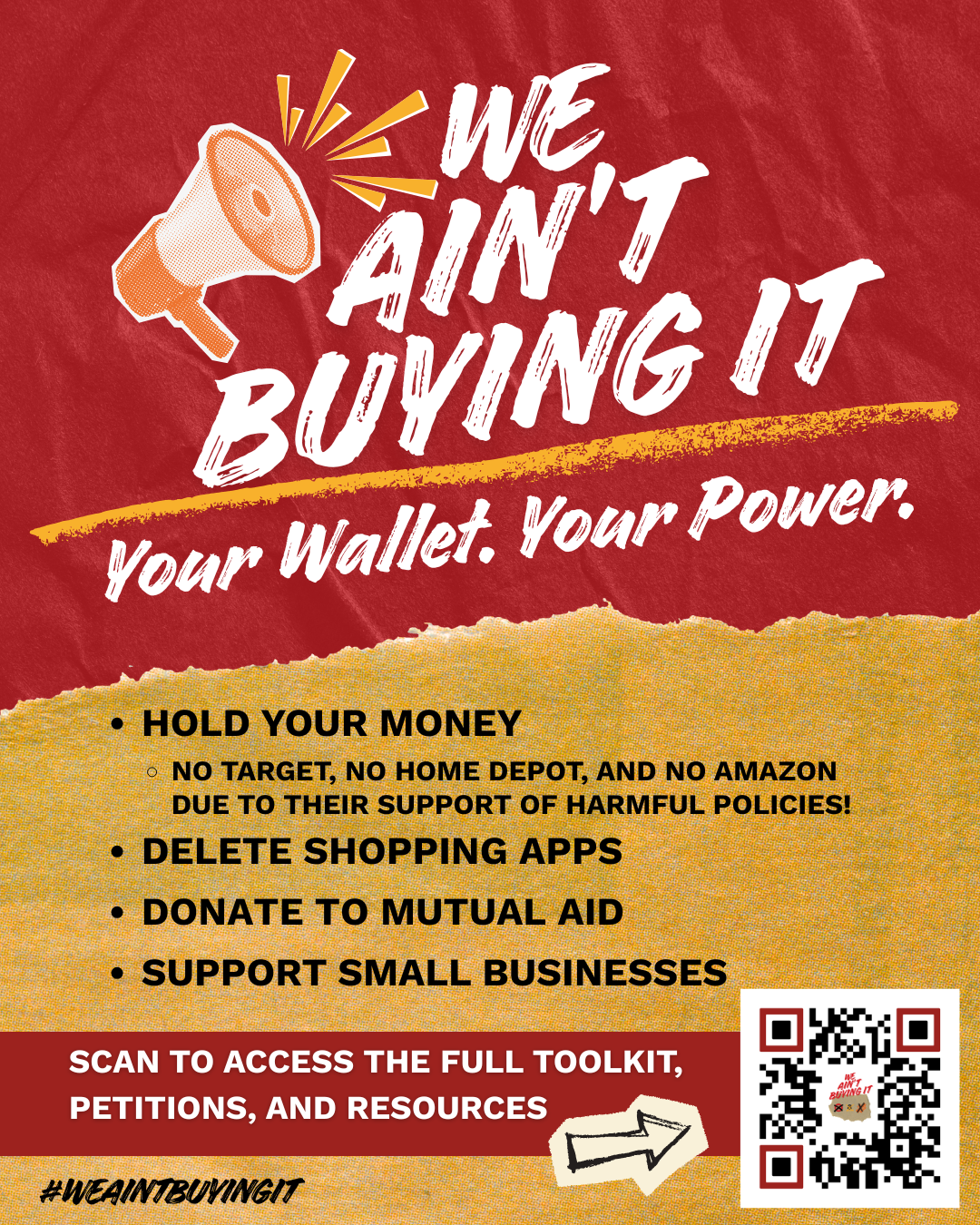 This action is taking direct aim at Target, for caving to this administration’s biased attacks on DEI; Home Depot, for allowing and colluding with ICE to kidnap our neighbors on their properties; and Amazon, for funding this administration to secure their own corporate tax cuts.